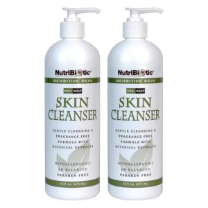 NutriBiotic Sensitive Skin Non-Soap Skin Cleanser, 16 Oz Twin Pack with GSE (Citricidal) | pH Balanced, Hypoallergenic and Biodegradable | Free of Parabens, Sulfates, Dyes, Colorings and Fragrance