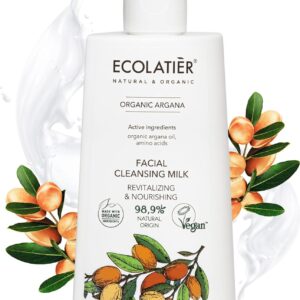 Facial Cleansing Milk Revitalizing and Nourishing Organic Argan Gentle Face Wash and Makeup Remover, Hydrating Facial Cleanser for Women and Men, 98.9% Natural, Vegan 8.5 Fl Oz