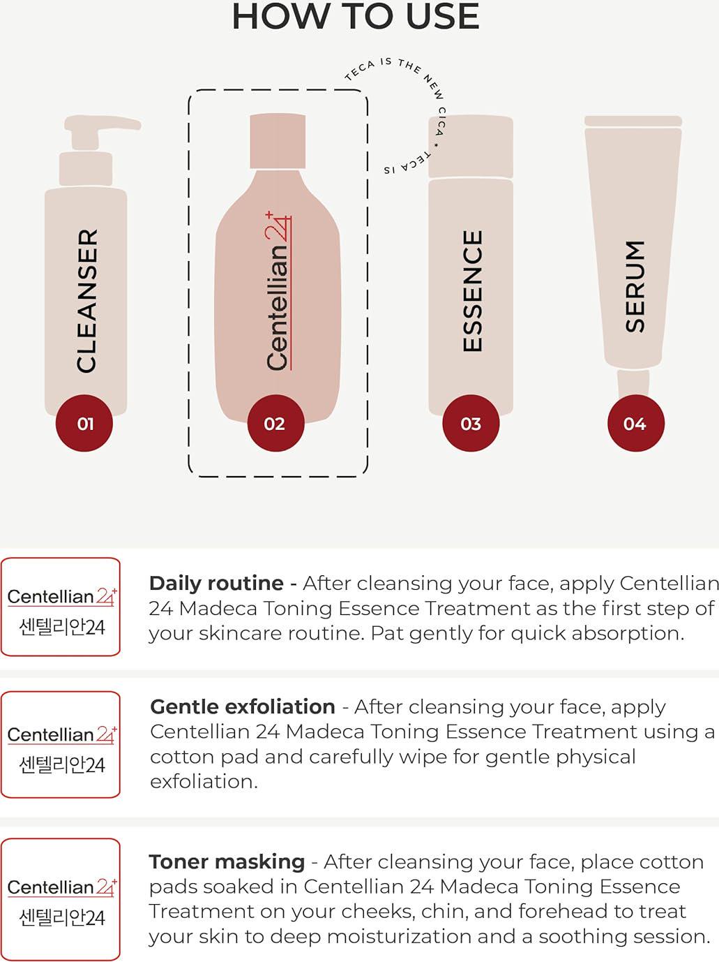 • TONING ESSENCE TREATMENT by Centellian 24 is a highly concentrated toner that contains powerful and nourishing ingredients sourced from centella asiatica to help promote clear and healthy-looking skin.