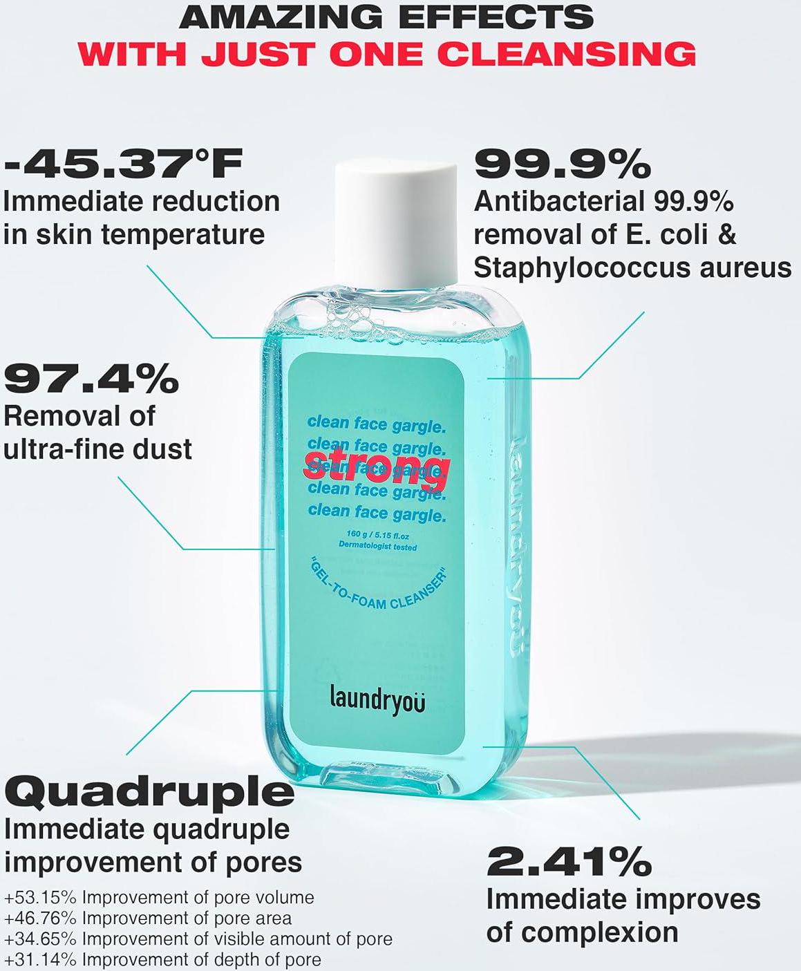 - VISIBLE SKIN IMPROVEMENT: See immediate results with Clean Face Gargle Cleanser’s advanced pore and skin radiant action. Dermatologically tested, it improves skin tone and texture, offering instant soothing coolness and a radiant complexion that showcases your skincare expertise.