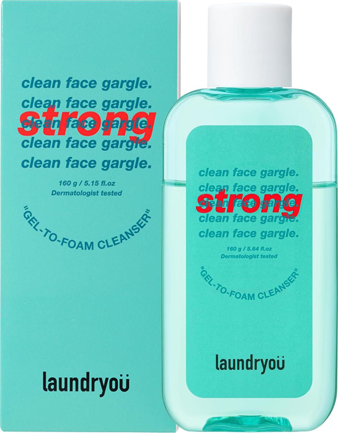Clean Face Gargle Gel-to-Foam Cleanser Strong – Gentle Pore Refining Cleanser, Non-Comedogenic, Sensitive Skin Tested, Cooling Effect and Improves Pores, 5.4 fl.oz.