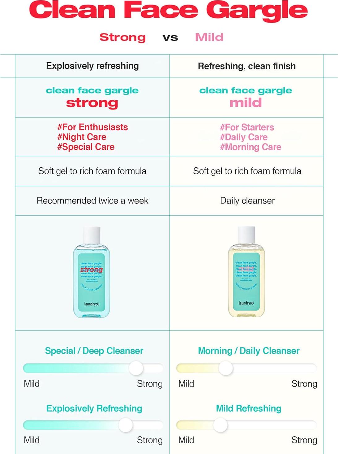 - DEEP PORE CLEANSE & REFRESH: Experience the magic of our Clean Face Gargle Gel-To-Foam Cleanser. Its special formula deeply cleanses pores, effortlessly removing makeup and impurities. Unlike other cleansers, it refreshes your face without dryness, making it ideal for both morning and night routines, ensuring a truly clean and invigorated feeling.
