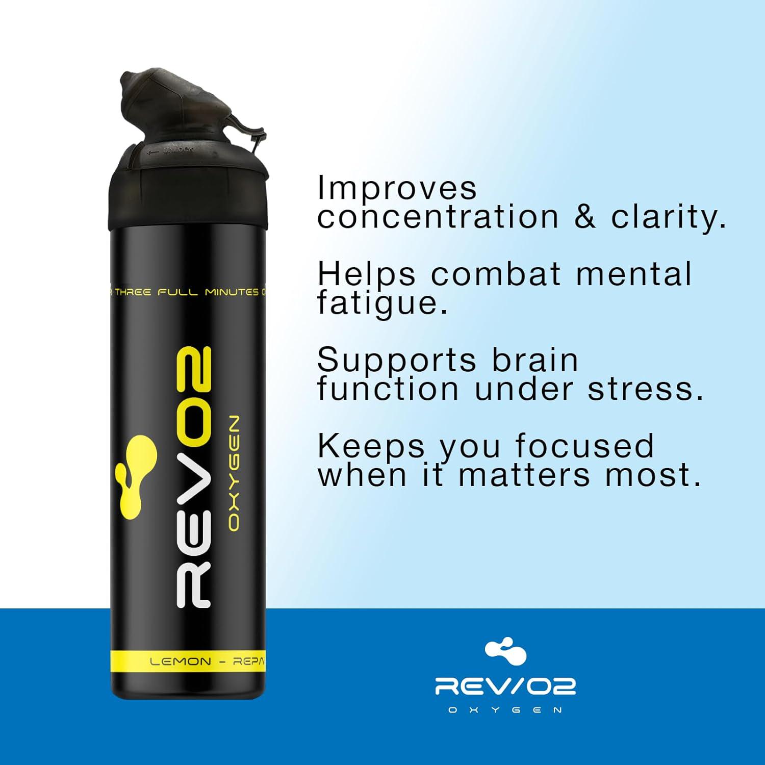 - Combat Post-Workout Exhaustion RevO2 Lemon Infused Portable Oxygen is designed to help fight fatigue after exercise, with invigorating lemon essential oil that stimulates recovery and revitalizes your body for faster rejuvenation