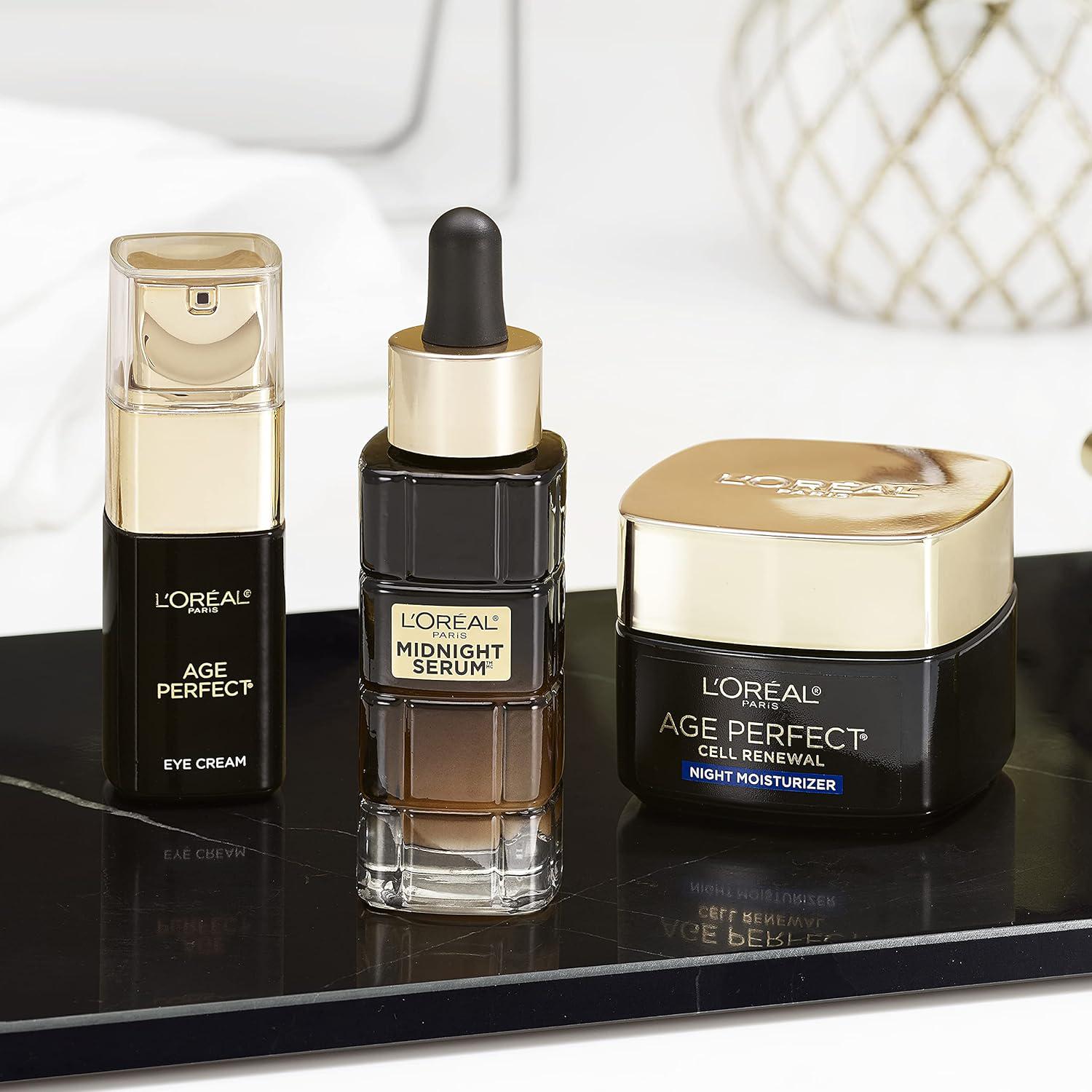 REVEAL MILLIONS OF NEW SURFACE CELLS, VISIBLY YOUNGER SKIN: Age Perfect Cell Renewal Night Moisturizer is an anti-aging face cream suitable for use every night. Made with an exclusive Antioxidant Recovery Complex, it helps to recover the skins antioxidant reserves night after night. Recommended by dermatologists, antioxidants help defend skin against damaging external aggressions and help boost its natural renewal process. Millions of new cells are revealed, and skin appears youngersee fewer wrinkles, firmer and more radiant skin. Formulated without parabens, it is allergy tested and dermatologist tested, suitable for sensitive skin. BOOST YOUR ROUTINE WITH A SERUM: Pair with our breakthrough NEW Age Perfect Cell Renewal Midnight Serum for even more skin-loving antioxidants. This powerhouse anti-aging serum helps reveal younger-looking skin. And it is PREFERRED TO THE #1 LUXURY NIGHT SERUM*. Try it for yourself and see! WHAT IS AN ANTIOXIDANT RECOVERY COMPLEX Our exclusive Antioxidant Recovery Complex helps boost skin’s renewal by combining a powerful, L’Oreal patented antioxidantderived from bitter orangeand Vitamin E to help reinforce the skin’s barrier. FEWER WRINKLES, FIRMER, MORE RADIANT SKIN: After 1 use, skin looks smoother and feels nourished and more comfortable. In 4 weeks, skin appears firmer, smoother and more radiant. HYDRATING, NON-GREASY FORMULA: With all-night hydration, this face moisturizer leaves skin soft to the touch and no greasy or sticky finish. PREMIUM GLASS JAR: With its sleek, modern design and gold finishes, this moisturizer is the perfect addition to any skin care collection. Made from recycled and recyclable glass material, its beautiful for you, as well as the planet.