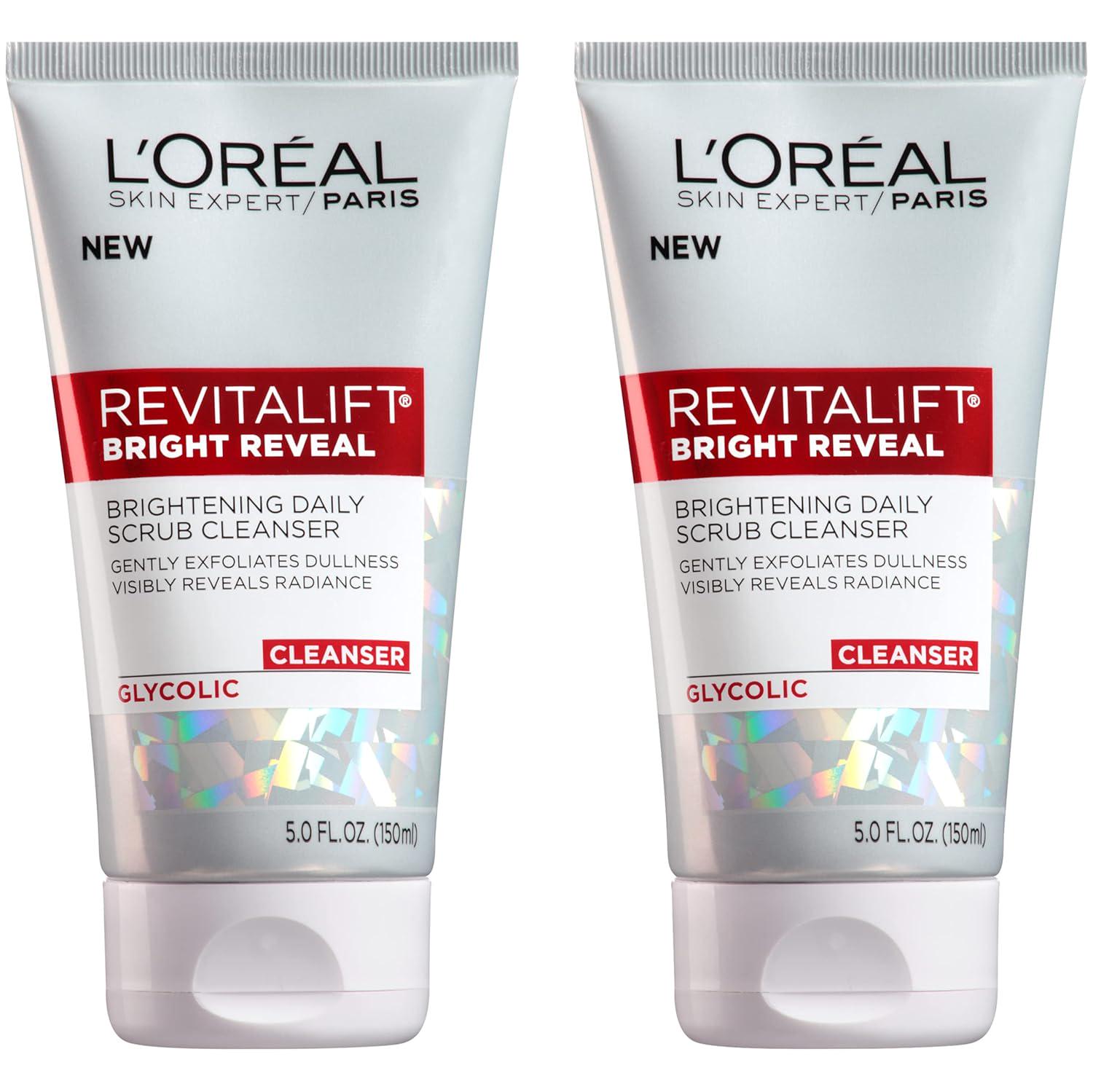 - L’Oreal Paris Revitalift Bright Reveal Cleanser is a brightening daily scrub facial cleanser that gently exfoliates dullness and visible reveals radiance