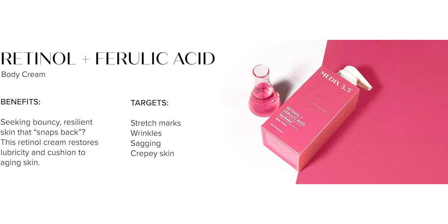 Medix 5.5 Retinol + Ferulic Acid Age Rewind Body Cream Crepey Skin | Wrinkles | Firming Fine Lines | Wrinkles | Even Skin Tone Wrinkles | Sagging Skin | Crepey Skin | Anti Aging Exfoliating Body Wash Prepares Skin For Medix 5.5 Body Creams + Boosters