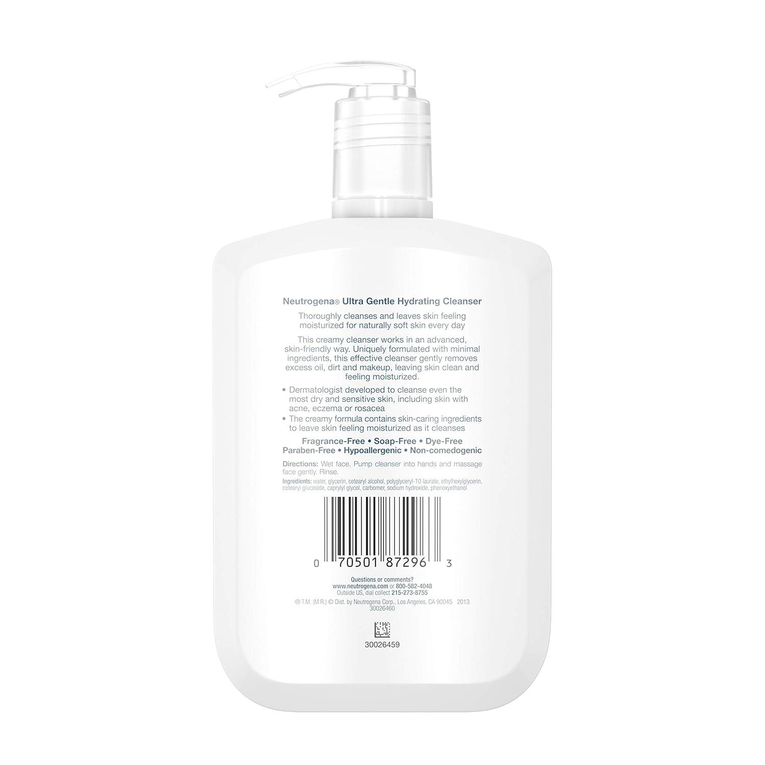 - 12-fluid ounce bottle of Neutrogena Ultra Gentle Hydrating Facial Cleanser for sensitive skin effectively cleanses face while leaving skin feeling moisturized and naturally soft all day