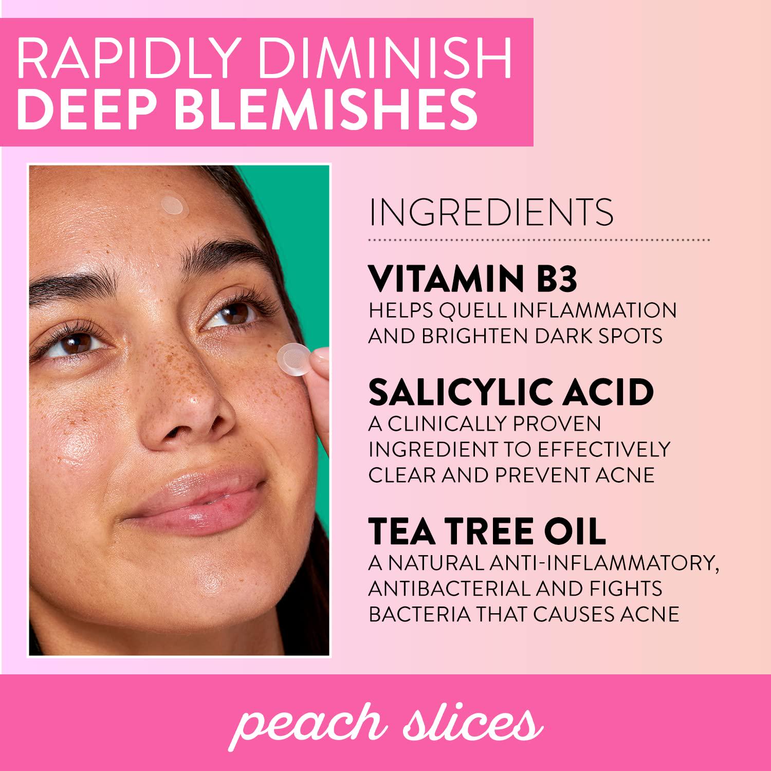 Peach Slices | Deep Blemish Microdarts | Acne Patch | Early Stage and Deep Pimples | Fast-Acting | Salicylic Acid | Tea Tree Oil | Niacinamide | Cica | Hyaluronic Acid | Spot Treatment | 9 Patches
