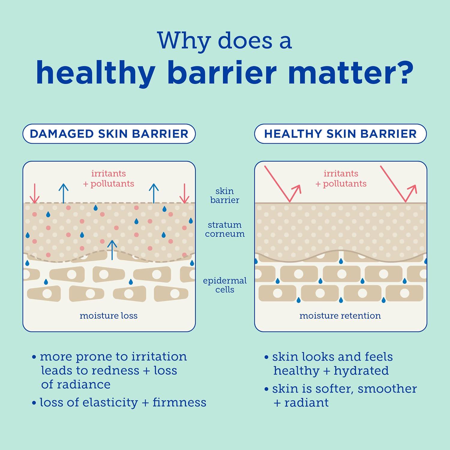 • HEALTHY SKIN STARTS WITH A HEALTHY BARRIER: The skin barrier is your body s first line of defense. If weakened, harmful things (i.e. , environmental stressors) enter the skin, and helpful things (i.e. water and natural lipids) deplete. This leads to premature signs of aging or other skin concerns such as dermatitis, breakouts, and psoriasis. Fixing skin barrier is our primary concern. Our formulas are engineered to address skin concerns while strengthening the skin barrier.